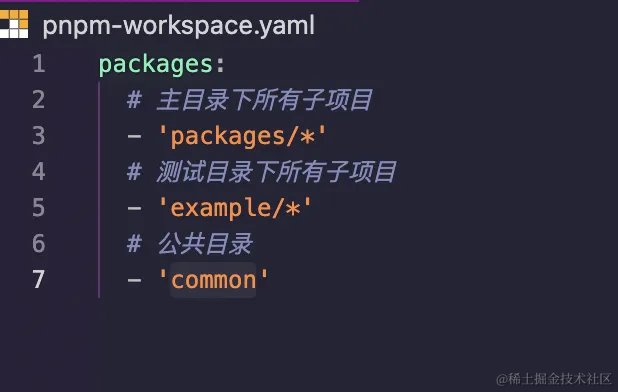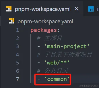③ pnpm-workspace.yaml 文件中添加 common 文件夹