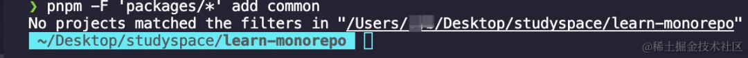 正确指令:pnpm -F "./packages/\*" add common