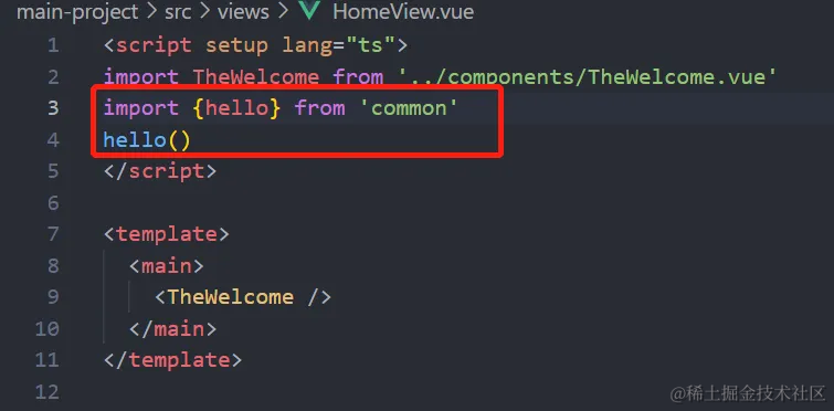 ⑤ 根目录运行 pnpm -F main-project add common 将 common 里的方法暴露给 main-project