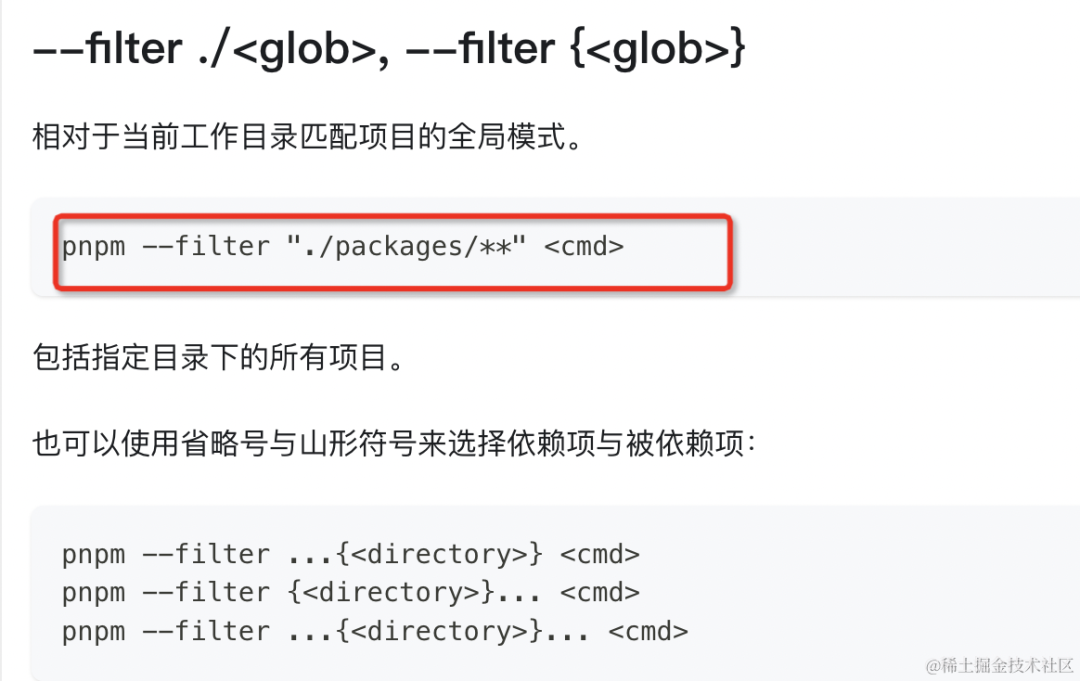 这里的 - F 是 --filter 的简写,用于过滤指定的 package,用法 pnpm --filter