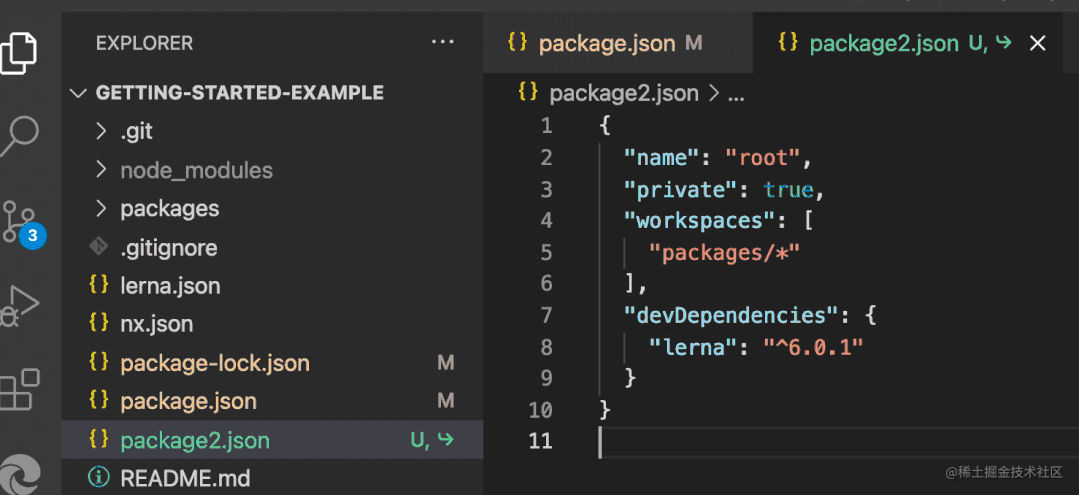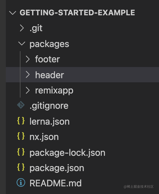 git clone https://github.com/lerna/getting-started-example.git下载下来是这样的结构: