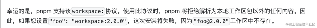 此外,yarn 和 pnpm 支持 workspace 协议,需要把依赖改为这样的形式: