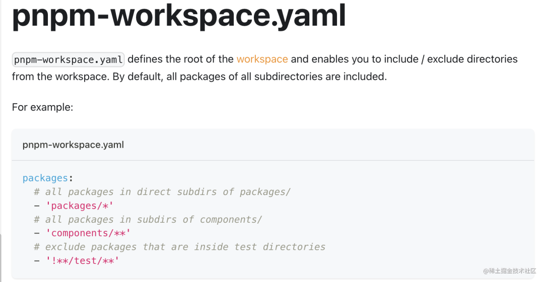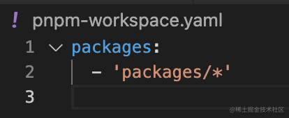 但 pnpm workspace 要声明在 pnpm-workspaces.yaml 里: