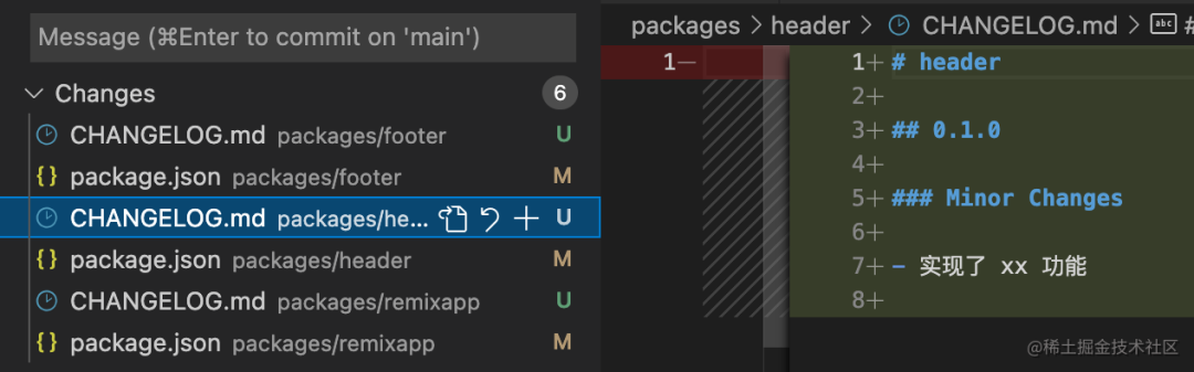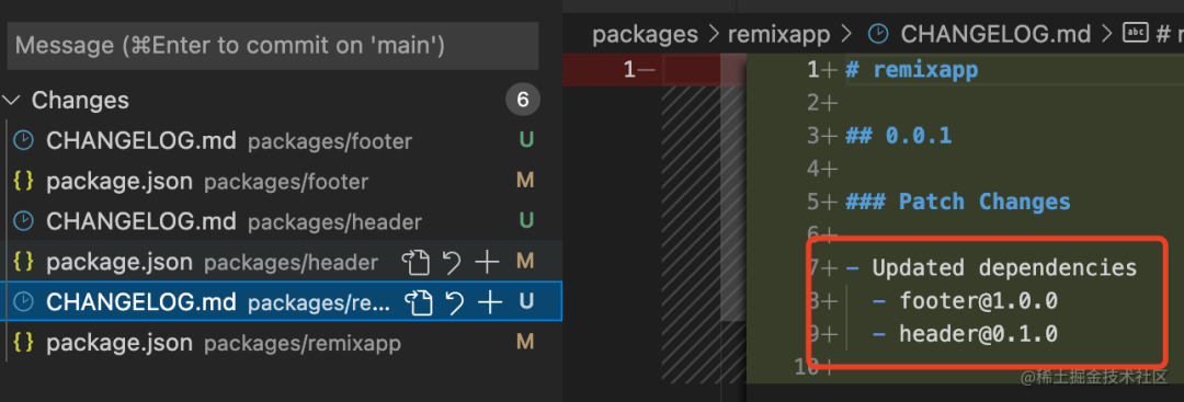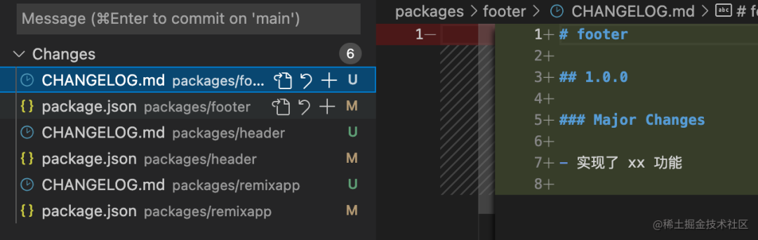 更改的包下都多了 CHANGELOG.md 文件: