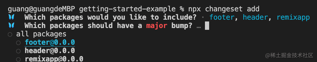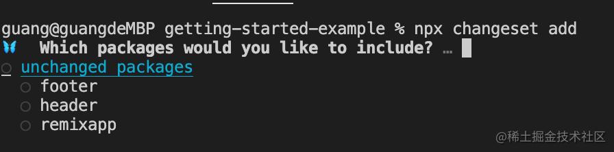 npx changeset add会让你选一个项目: