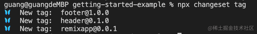 执行 changeset publish 命令就可以,并且还会自动打 tag: