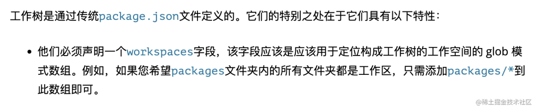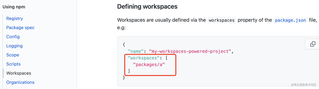 这里用的是 npm workspace: