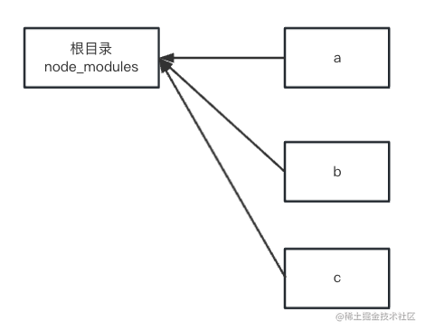 比如一个 monorepo 项目下有 a、b、c 三个包,那么 monorepo 工具会把它们 link 到父级目录的 node_modules。
