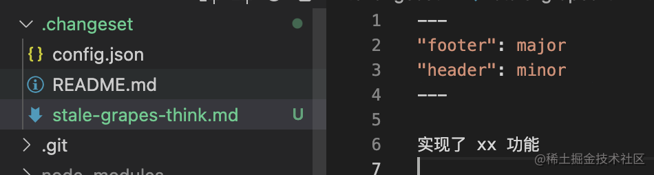 然后你就会发现在 .changeset 下多了一个文件记录着这次变更的信息: