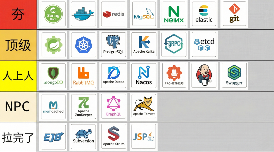 后端技术从夯到拉排行榜