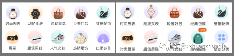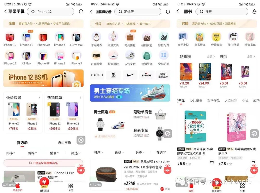 转转是一个二手电商平台,如果仔细观察每条业务线的页面 UI,可以发现它们大部分遵循统一的 UI 风格。实际上很多电商平台都有类似的 UI 结构。下图是转转三条业务线的首页,仔细观察就可以发现,它们有非常多相似的地方:顶部的搜索框、金刚位、轮播图、运营卡片、商品卡片。虽然它们非常相似,却在一些细节上有微小的差异,并且这些页面由不同的前端同学负责,就导致了相似的功能被不同的成员多次重复实现。