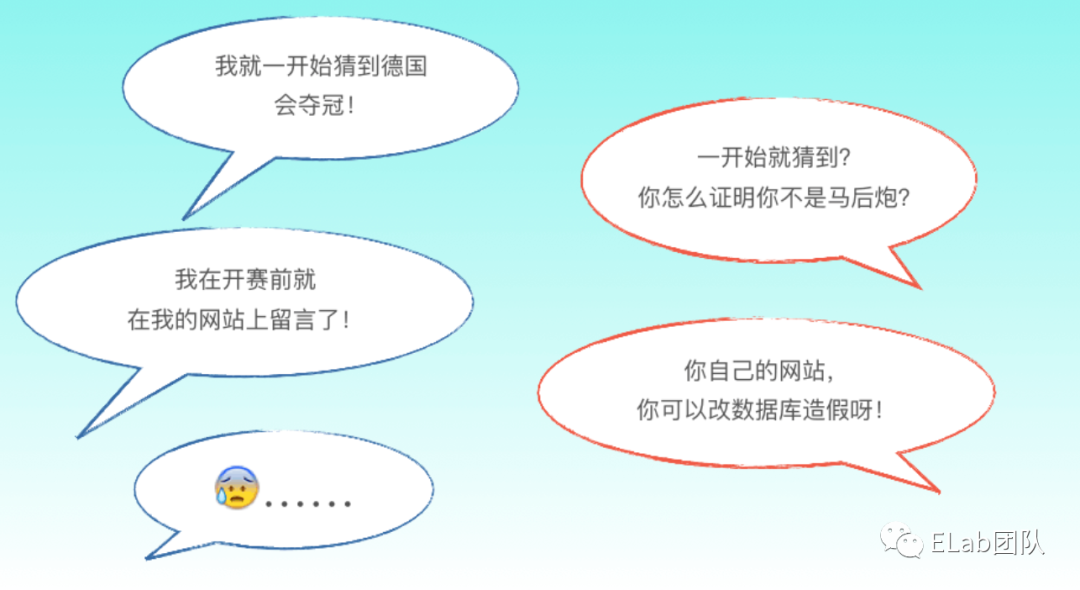 小明用 js 用区块链的形式在世界本的开始之前把预测的内容存储在了这里。并且成功预测.