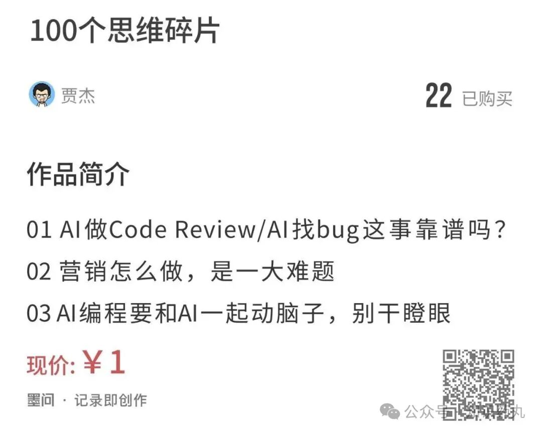 《贾杰的 AI 编程秘籍》付费合集,共 10 篇,现已完结。30 元交个朋友,学不到真东西找我退钱;)