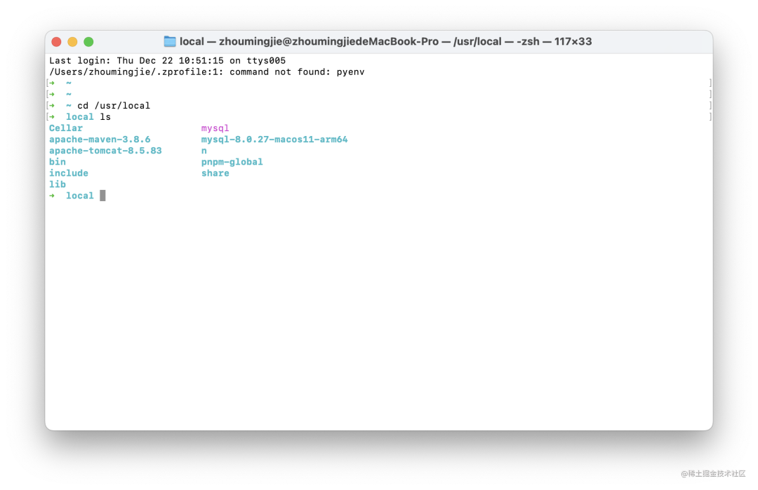 cd /usr/local然后再使用 ls 就可以查看下面安装的东西了。